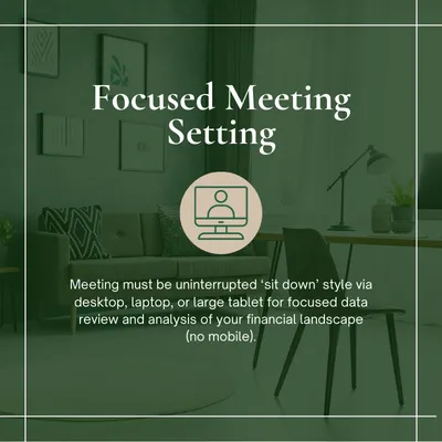 Just like a doctor can't give you the right prescription without knowing your symptoms, we can't create a meaningful plan without accurate financial information. The good news is: you'll only share basic details like net household income, debts, and general expenses. We never sell or share any of your information, and everything stays 100% confidential. That's part of our fiduciary responsibility to you.