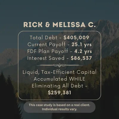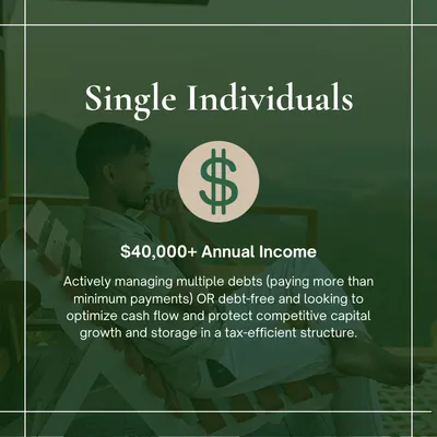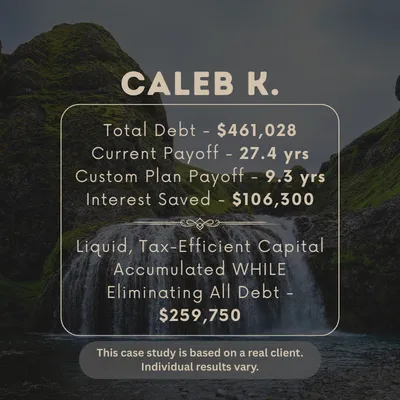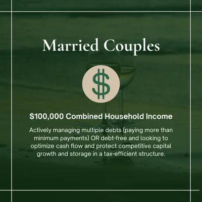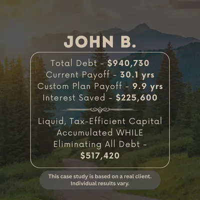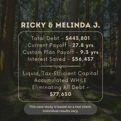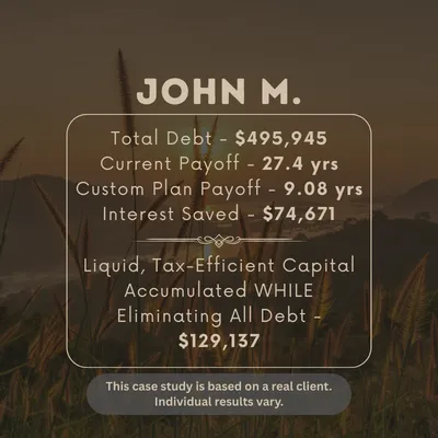 Families, individuals, and entrepreneurs who either feel stuck in debt (even if they make good money) or, those who just want a better way to maximize the dollars they have. Our ideal clients typically earn $100k+ (household), and have multiple debts like mortgages, car loans, student loans, or credit cards. If you've ever felt like you're working hard but not getting ahead - this process is for you.